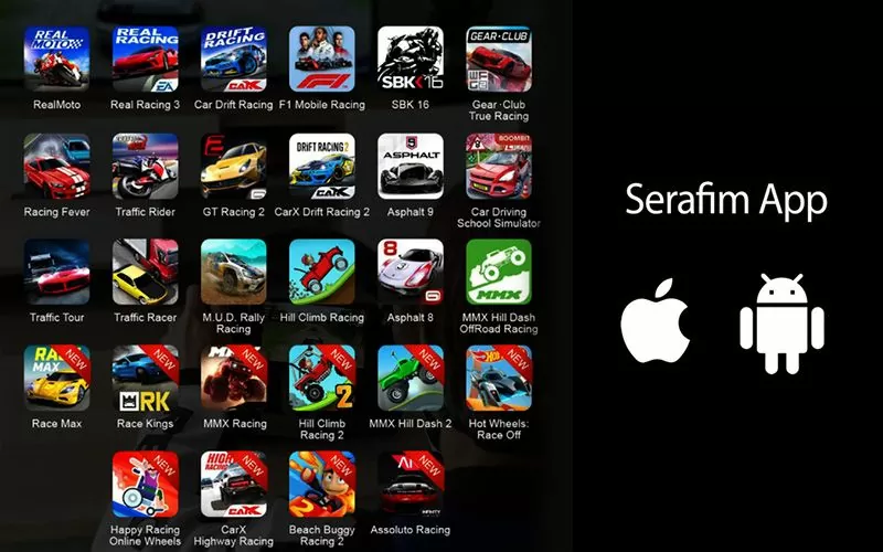 - Aplicación Serafim Play dedicada con configuración rápida. Tu carrera está lista de inmediato.